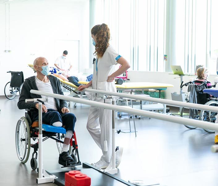Durant son séjour au sein de l’Institut, le patient bénéficie d’une prise en charge globale comprenant les traitements médicaux dont il a besoin et le programme de rééducation et/ou réadaptation nécessaire : kinésithérapie, ergothérapie, orthophonie, balnéothérapie, etc.