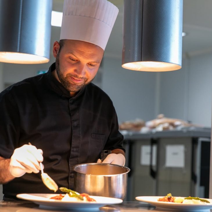 Les patients bénéficient d’un service de restauration de qualité : l’équipe travaille en collaboration avec la diététicienne pour l’élaboration des menus. Les repas sont servis en salle à manger, sauf si l’état de santé du patient ne le permet pas. Il est possible de recevoir des invités, à condition de commander leurs repas 48 heures à l’avance.